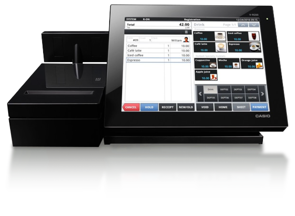 V-R200 equipped with a 10.4 inch touch screen is the ideal EPOS solution. The small size yet